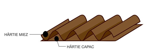 Cartonul ondulat este combinația dintre două foi de hârtie numite “capac” lipite de o hârtie ondulată numită “miez”. Aceste trei straturi de hârtie sunt asamblate într-un mod care dă structurii generale o rezistență mult mai bună decât cea din fiecare strat.